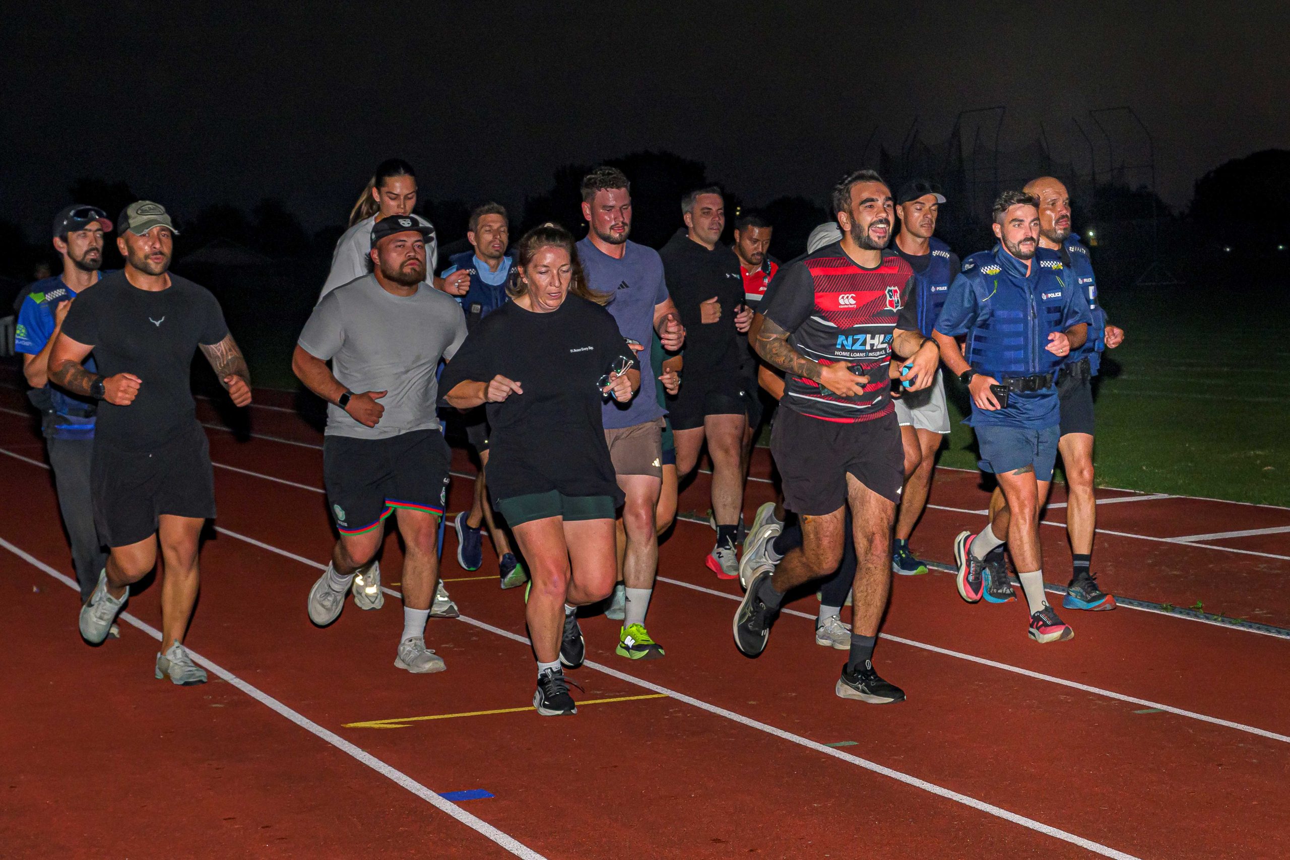 “Eighteen members of his 19-strong police section made their way to the track at various points throughout the day, (the missing member was on an AOS selection course in Porirua), many of them on leave or rostered days off. Officers who had just completed a 10pm to 6am shift arrived straight from work and ran laps in full kit: woollen pants, boots, body armour system (BAS), Taser and radio.”