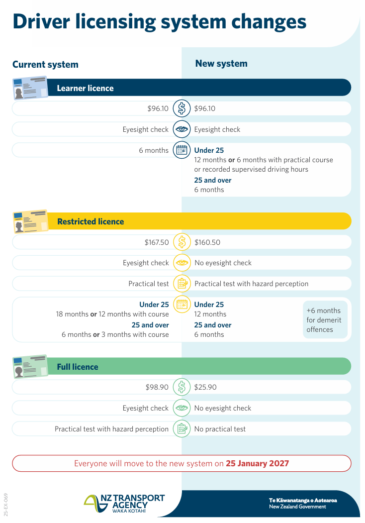 The new licensing system will come into effect from 25 January 2027. Until then, existing driver licensing rules will remain in place.