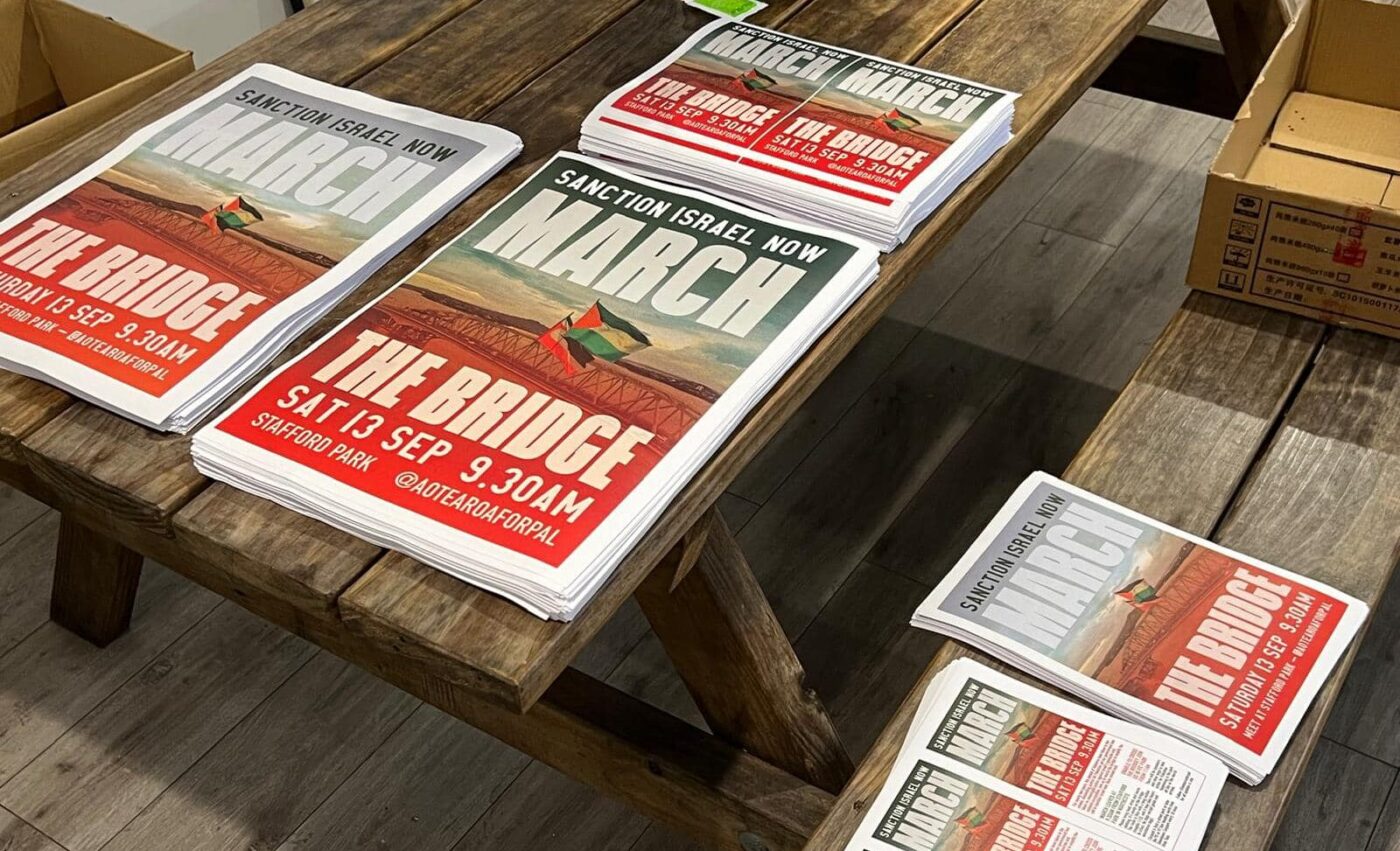 The planned demonstration follows similar anti-genocide marches over the Sydney Harbour Bridge and Brisbane’s Victoria Bridge in Australia last month, each attracting 50,000-100,000 protestors.