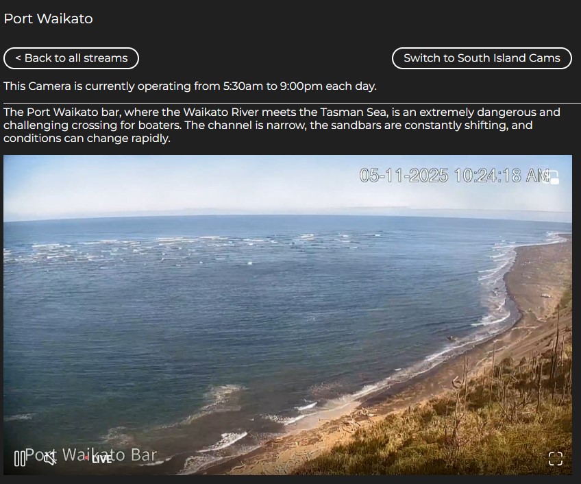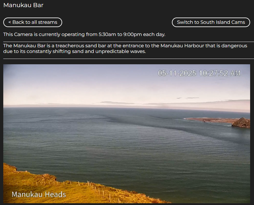 “We provide complimentary access to selected Coastguard units so they can monitor live conditions, coordinate rescues more effectively, and observe bar crossings in real time. Current participating units include Maketū, Ōpōtiki, Waiuku, and Papakura.”