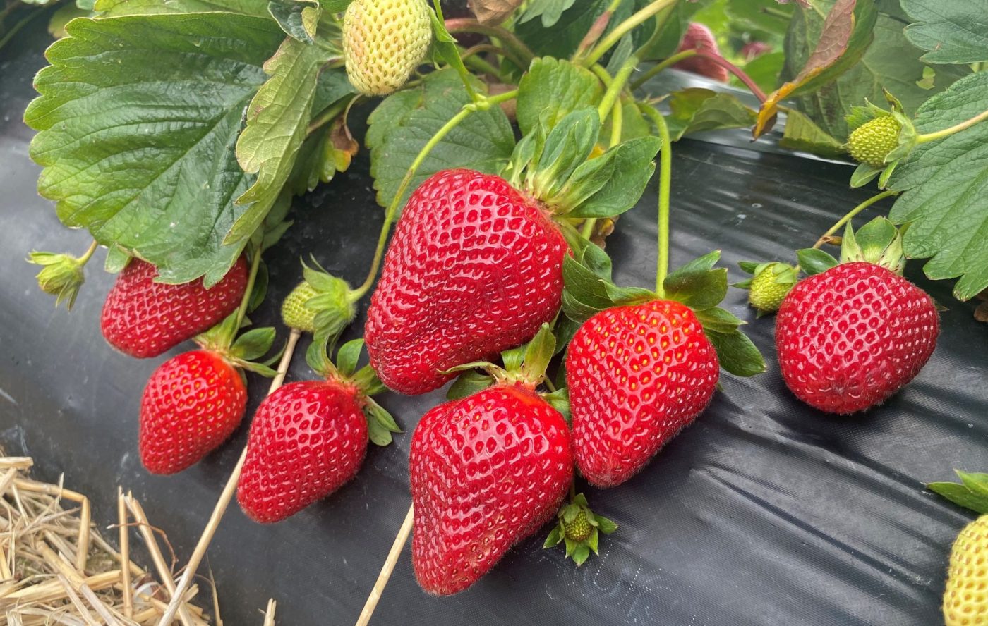Clevedon Strawberries operates two sites, the original site at Clevedon and the second is a short drive away at Ardmore, where the giant strawberry is. The Clevedon site is always a little bit ahead each season, even though we plant at the same time. It’s elevated and north-facing with clay soil, while the Ardmore site is on peat soil.