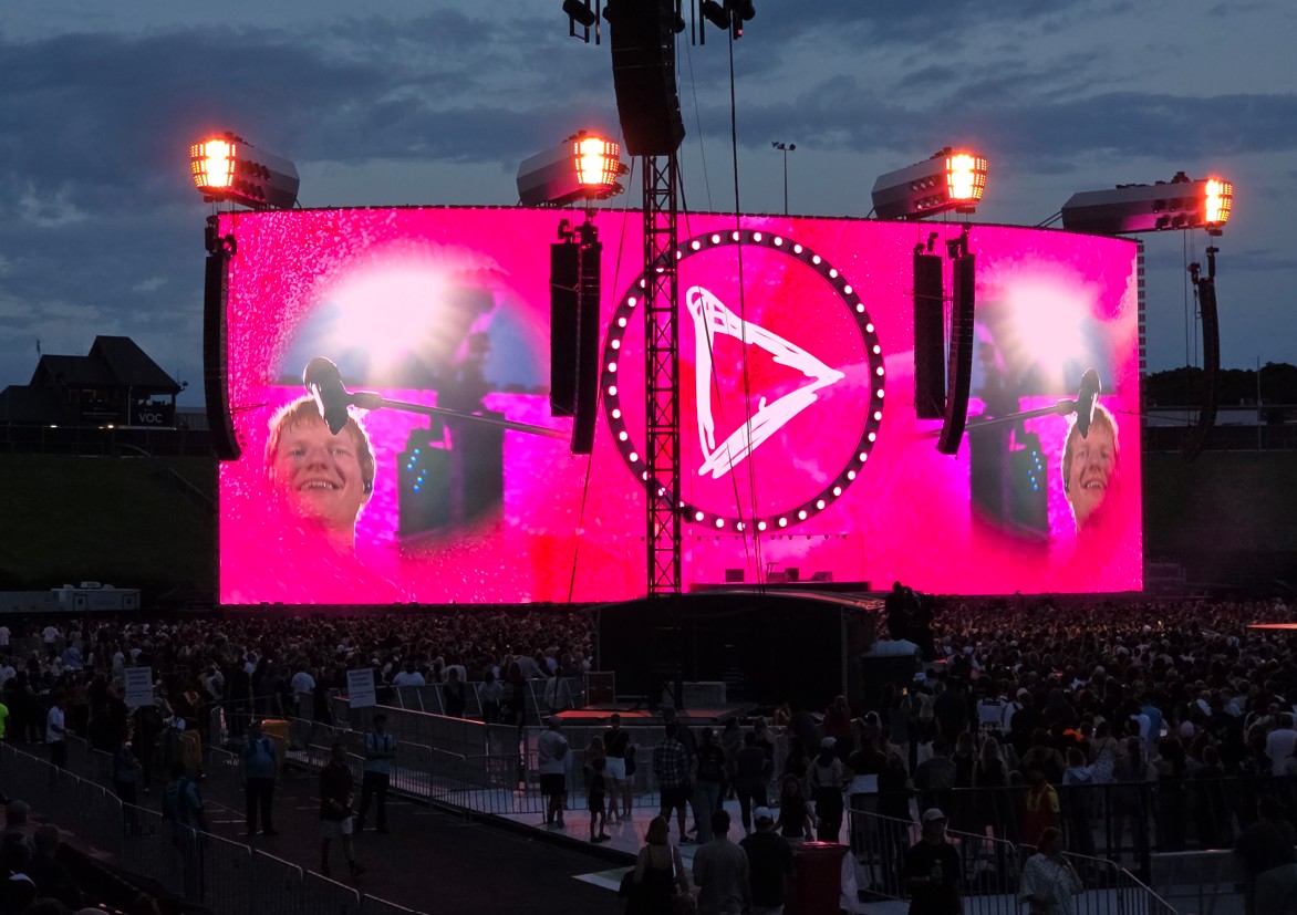 Against a spectacular backdrop of lights and kaleidoscopic colours from Australasia’s biggest TV screen, along with his loop pedal and an acoustic guitar, Sheeran cast a lone figure.